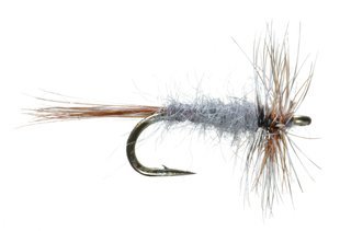 Adams Midge Pattern Recipe: Hook- TMC101 sizes 18-26, Thread- Gray 8/0 nylon, Tail- Brown and grizzly hackle barbs, Body- Natural muskrat fur dubbing, Hackle- Brown and grizzly mixed and wrapped collar style.